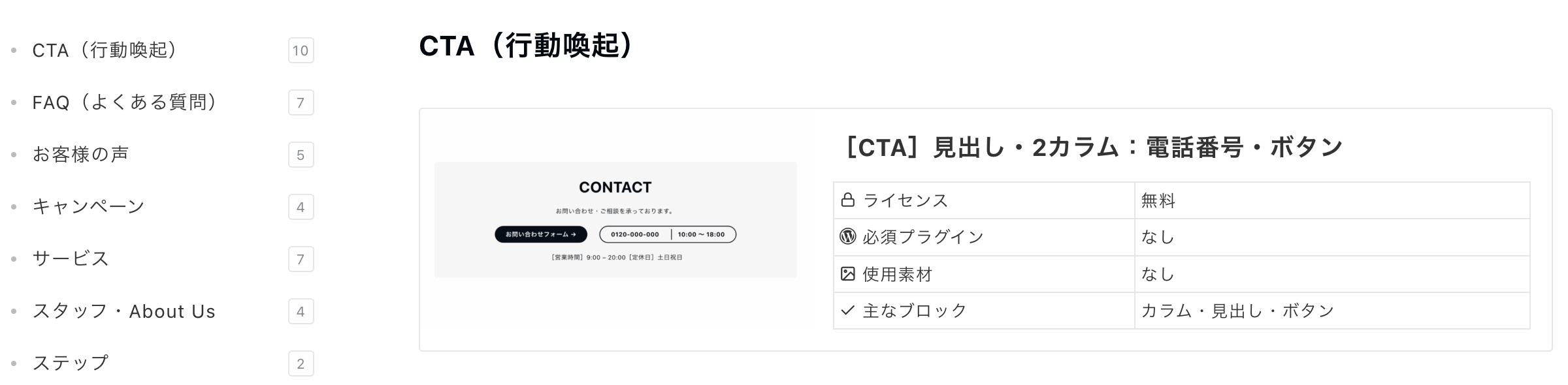 気に入ったパターンをコピーして、ブロックエディタに貼り付けるだけでそのまま使えます。
