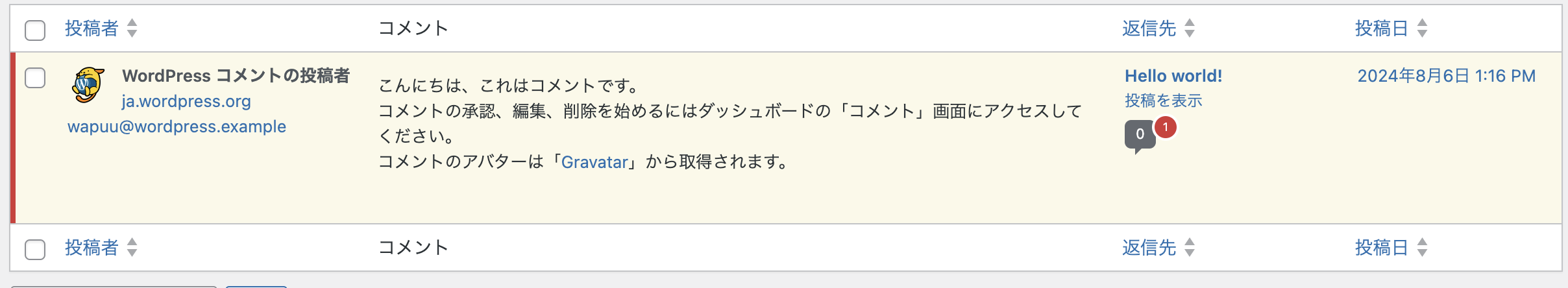- 承認を解除:クリックすると投稿されたコメントが投稿ページに表示されなくなります。