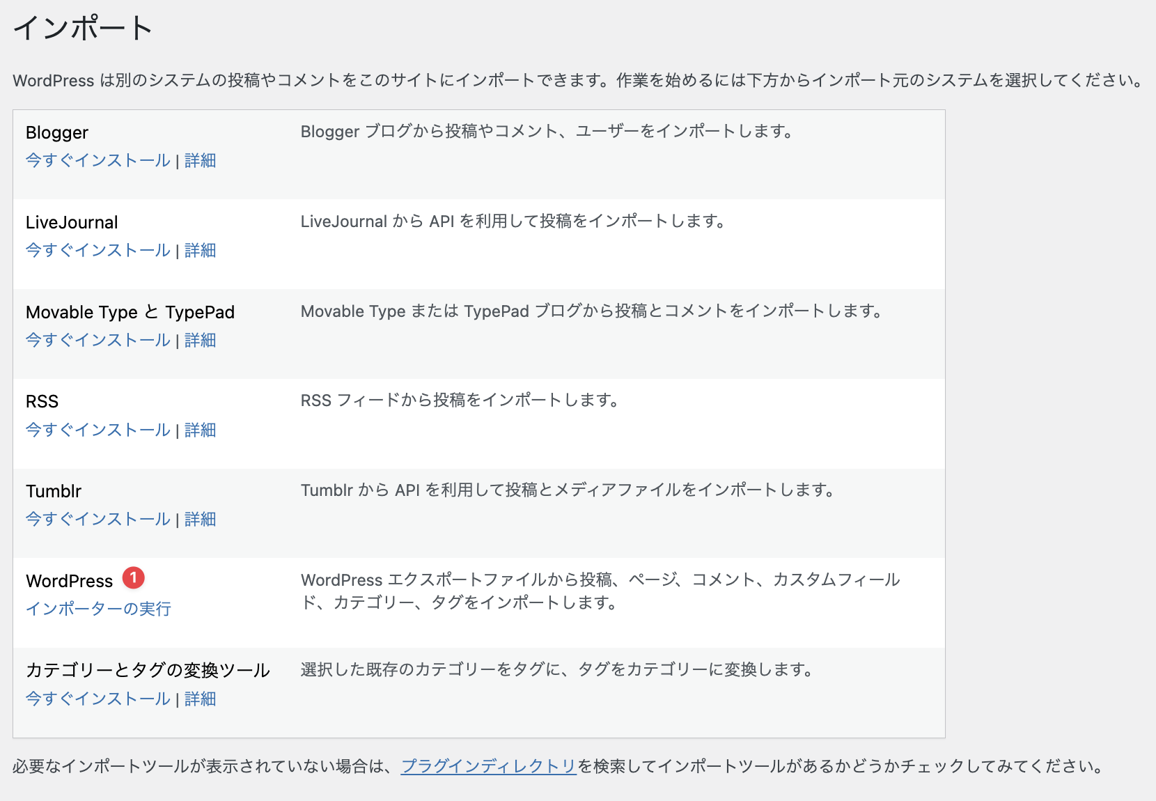 インポート>WordPressをクリックすると、下記画面が表示されます。
