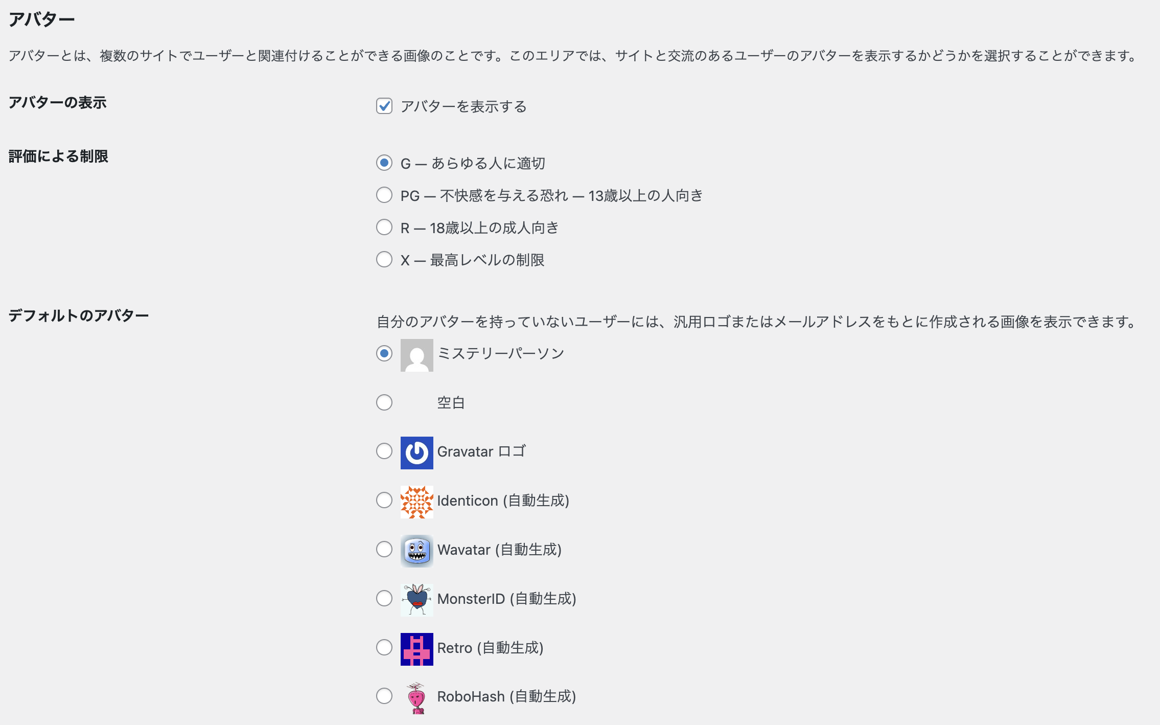 アバターとは、コメント欄に表示される投稿者のプロフィール画像のことです。外部サービスである「Gravatar」に登録したロフィール画像を、コメント欄で表示させることができます。
